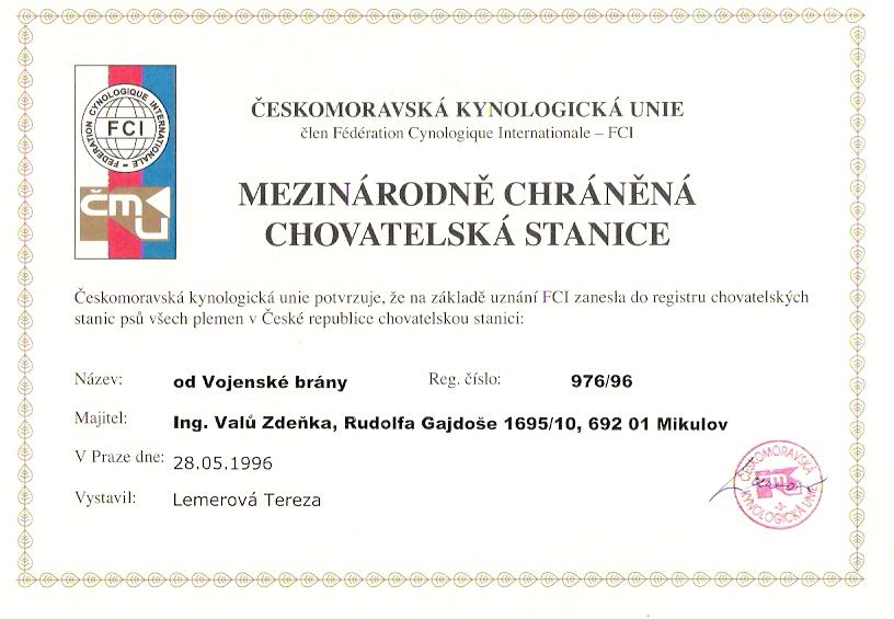 Reg. číslo CHS: 976/96 Certifikát CHS:Zobrazit Certifikát ::: Plánujeme vrh: 20.05.2014 Hodnocení: 100 bodů ze 100