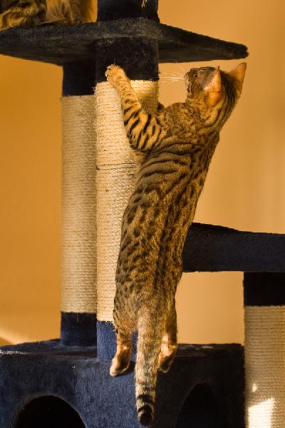 O plemeni:Kočka bengíálská není žádný ytový doplněk. je krásná, elegantní, jemná na dotyk, inteligentní, ale velice temperamentní, hravá a dovádivá :) není zlá, ani zákeřná. Většia miluje vodu, výšky a hračky všeho druhu.