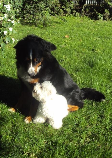 O plemeni:Berňáci a Bišonci se k sobě náramně hodí. Kdo by si myslel, že bišon je jen na gauč, velmi by se v něm spletl. Naši pejsci jsou sportovně založení, všichni milují cvičák a dlouhé procházky. Berňáčci jsou medvídci s velkým srdcem, milují děti a lidi vůbec. Ke hlídání se moc nehodí, odradí snad jen svou velikostí. Bišonek je takový malý lední medvídek s hustou srstí. Naši pejsci si výborně rozumí, nejhezčí pohled na ně je, když spolu dovádějí na zahradě.