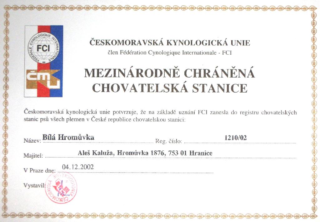 Chovatelská stanice: BÍLÁ HROMŮVKA
