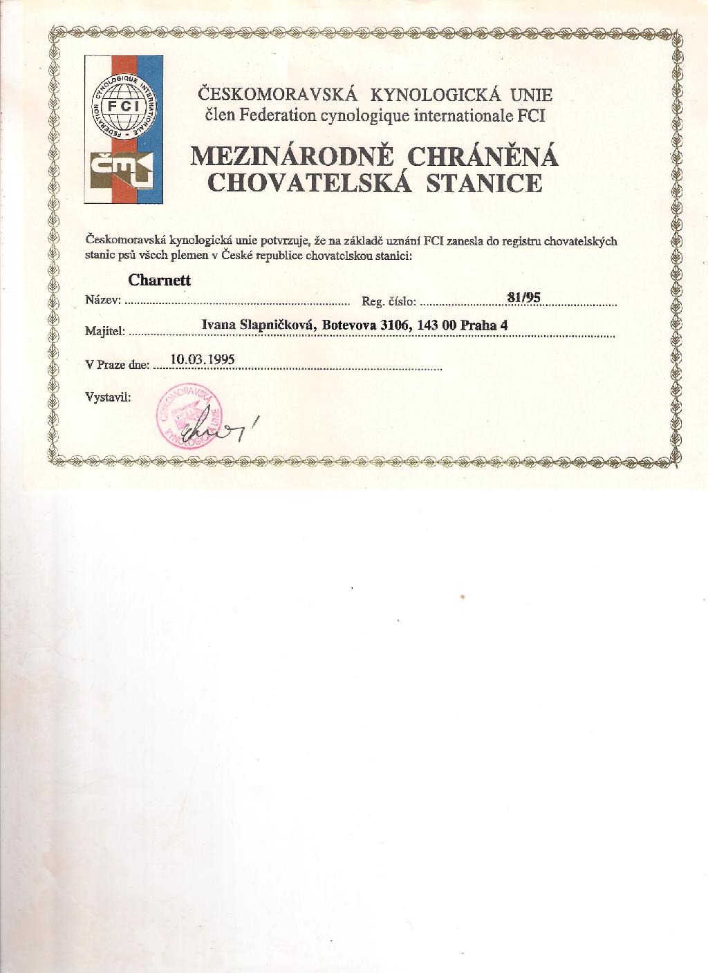 Adresa: Praha4 - Modřany Telefon: +420606864200 Zodpovědná osoba: Slapničková Ivana www: www.bichon-charnett.cz Mail: | Reg. číslo CHS: 81/95 Certifikát CHS: Zobrazit Certifikát ::: Plánujeme vrh: 10.07.2010 Hodnocení: 100 bodů ze 100 |