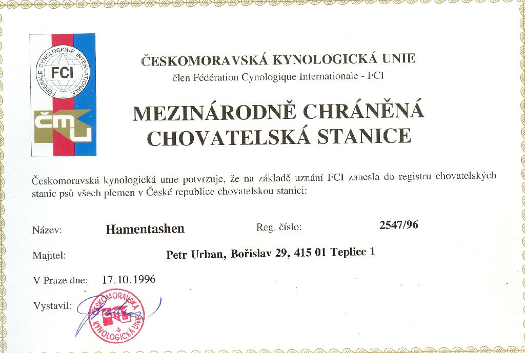 Reg. číslo CHS: 2547/96 Certifikát CHS:Zobrazit Certifikát ::: Plánujeme vrh: 01.09.2010 Hodnocení: 100 bodů ze 100