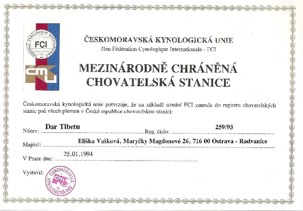 Chovatelská stanice: DAR TIBETU