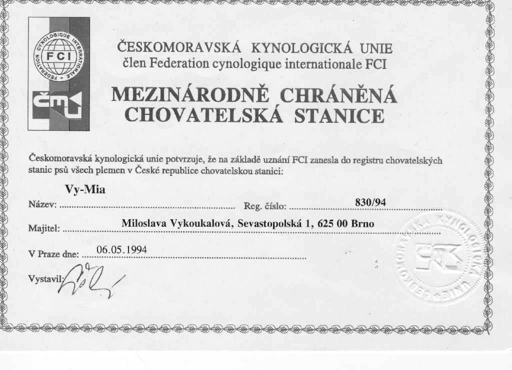 Reg. číslo CHS: 830/94 Certifikát CHS:Zobrazit Certifikát ::: Plánujeme vrh: 21.07.2010 Hodnocení: 98 bodů ze 100