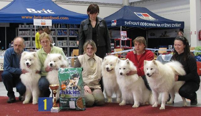 O nás:Samojed je součástí našeho života. Dává nám spoustu radosti a přináší sluníčko do našeho domova i když venku prší a je nevlídné počasí. První samojedí slečnu mám od vánoc roku 1998, která přišla jen coby domácí mazlíček, ale kdo pozná samojeda a jeho úžasnou povahu, určitě nezůstane ten první samojed sám.A tak v současné době mám odchováno 6 vrhů štěnátek, kteří jsou už zařazováni v chovu a doma očekávám třetí rodinný přírustek - pejska, který k nám připutuje ze Slovenska.