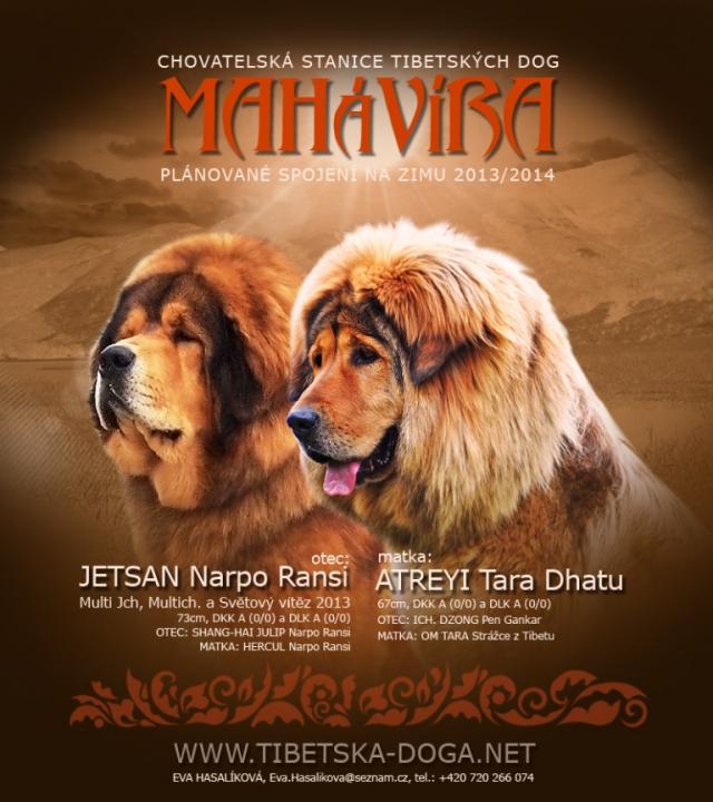 O plemeni:Tibetská doga neboli také tibetský mastiff v zemi původu Do Khyi ( přivázaný pes).Tibetský mastif se od ostatních mastifů liší mírnější povahou. Hodí se za domácího společníka. Oddaný je nejen svému pánovi, ale celé rodině, je to výborný hlídač a ochránce rodiny.