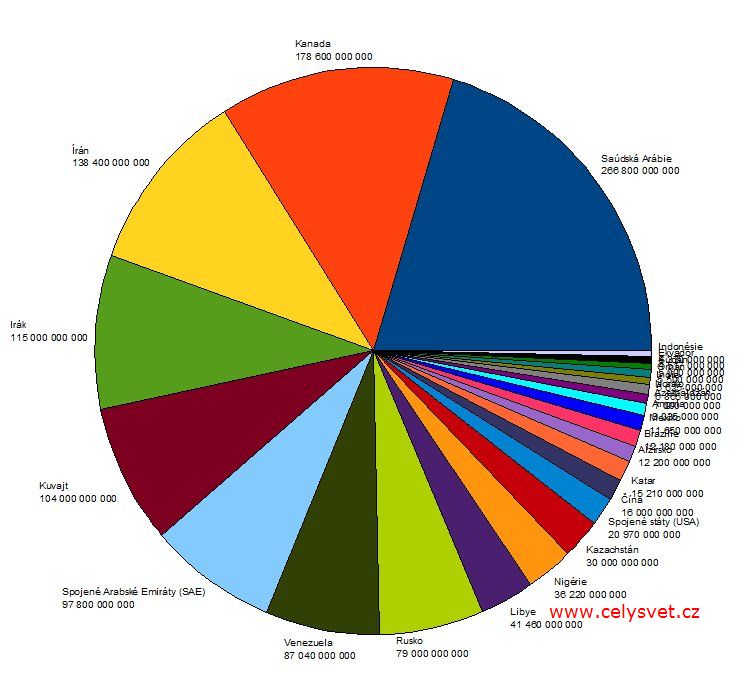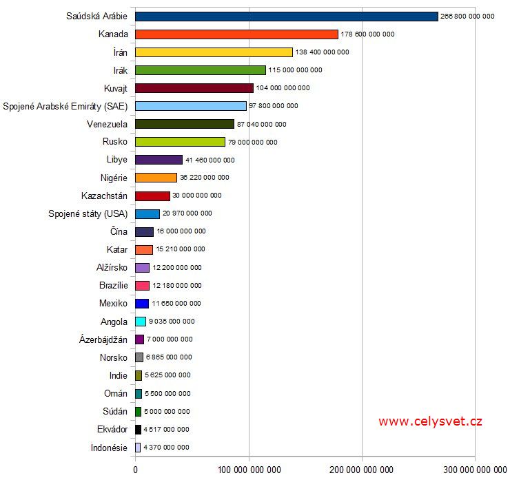 | 2. | Saúdská Arábie ::: | 266 800 000 000 barelů / den | Vývoj : |