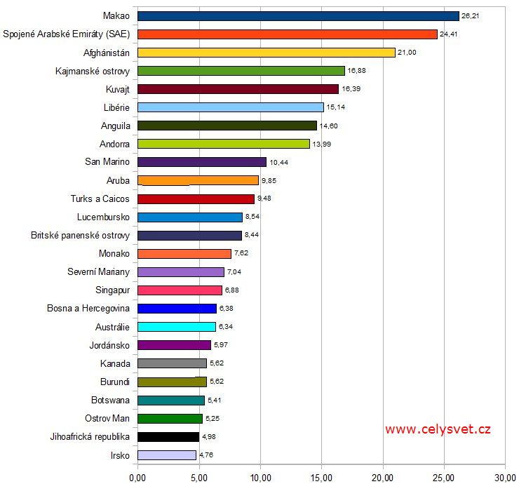 | 4. | Kajmanské ostrovy ::: | 16.88 emigrantů na 1000 obyvatel | Vývoj : |