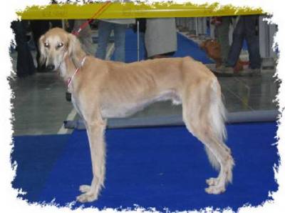 Náš Dálí je typický představitel plemene Saluki.Saluki jsem obdivovala už delší dobu a strašně se mi líbili pro svůj vzhled, velmi ladný a elegantní pohyb a grácii chrtům vlastní.Hůř už jsem na tom byla s povahou a s tím, že Saluki údajně potřebují denně alespoň 15 km v pohybu a nepatří zrovna taky k levnějším záležitostem.Dnes už samozřejmě vím, že to je naprostá lež.Dálí je velmi klidný, přátelský pes, stačí mu sprint a pohyb 20 minut ve volné přírodě a doma padne jak zabitý.Pokud zrovna neběhá, jezdíme s ním na kole, nebo doma doslova a do písmene spí.Někdy také nevyzbyde čas, aby se proběhl, takže k dispozici má výběh, Saluki neprotestuje a pokud se opravdu ven nejde, spí a spí a nic o něm nevím.Zato bouřlivou měl Dálí pubertu.Saluki jsou v mládí trochu divoši a mají sklony ničit.Dálí nic neničil, ale zato stahoval vše na co přišel a zničili ostatní, i dnes ještě ráno nacházíme třeba vymotaný toaletní papír po výběhu, takže Saluka opravdu donutí uklízet všechno, i ten toaleťák .-) Takže jsme přečkali nejhorší období a dnes je už to celkem v pohodě.Dálí ovšem musí další kousky - na povel hlídat, na povel skákat na svého oblíbeného člověka a štípat jej do nosu (takhle totiž projevuje svou náklonnost) a v neposlední řadě umí i otevírat dveře a bohužel i okna, ledničku a další šuplata.A kdo tvrdí, že chrt je hloupý, tak jej upřímně lituji.Prostě se Salukou se nikdy člověk nenudí.Dálí má jednu obrovskou výhodu a to tu, že může běhat na volno.Nemá zas až takový štvací pud, i když střapec ho baví, ale že by z něj byl odvázán, to se říct nedá.Dálí k nám přišel jako 3 měsíční z Rýmařova a ihned byl jako doma.Měla jsem na výběr mezi zlatým Dálím a grizly tuším Djahangírem, ovšem zlaté Saluky mě přitahovaly a tak k nám přijel jednoduše Dálí.Dálí se narodil v Rýmařově grizly fence Amoně Al-Isfahán, pochází z nového nepříbuzného krytí německým červeným psem Arifem Yalameh. Dálí je vysoký pes zlaté barvy s elegantní hlavou, vynikajícím pohybem, naprosto rovnými zády a vyrovnanou, přátelskou povahou.Velmi rád se předvádí, ve svých 9 měsících a na první výstavě získal první titul a v soutěži Junior Handling se probojoval do semifinále.